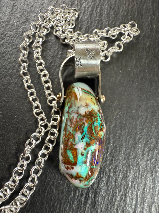 An absolutely stunning blue opal bangle. It’s such a unique piece and I love it! Thank you!