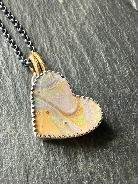 Chalcedony and opal necklace, jewellery gift for her, wire wrapped and dangle drop jewelry, mixed metal necklace