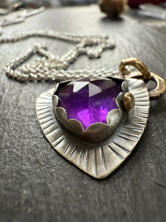 Very pretty amethyst stone. Colour is highlighted by the oxidised silver. Well made. I love it.