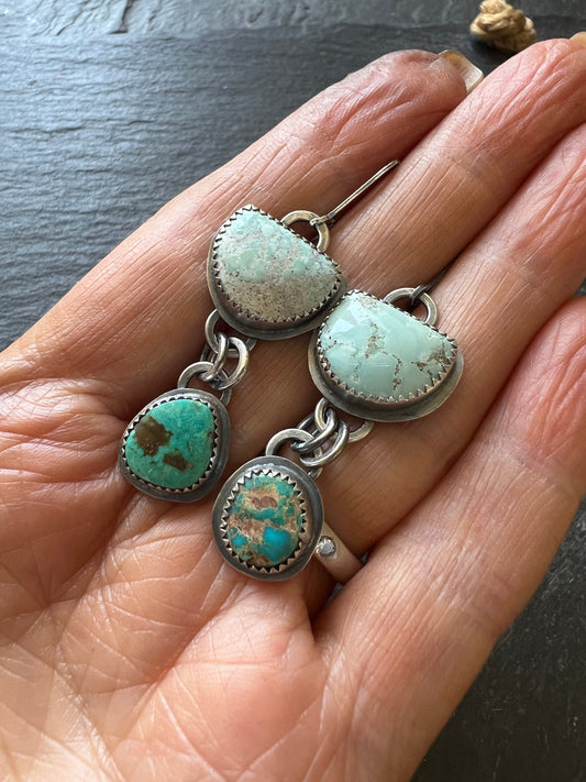 Mismatched turquoise earrings, bezel set earrings set in sterling silver, boho jewellery