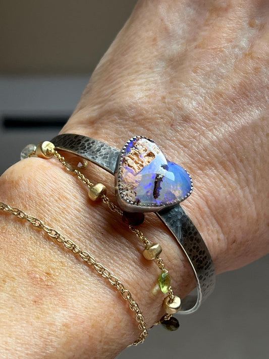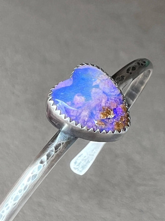RESERVED - Small Heart bangle bracelet, boulder opal bezel set bracelet, sterling silver boho bracelet, gift for her