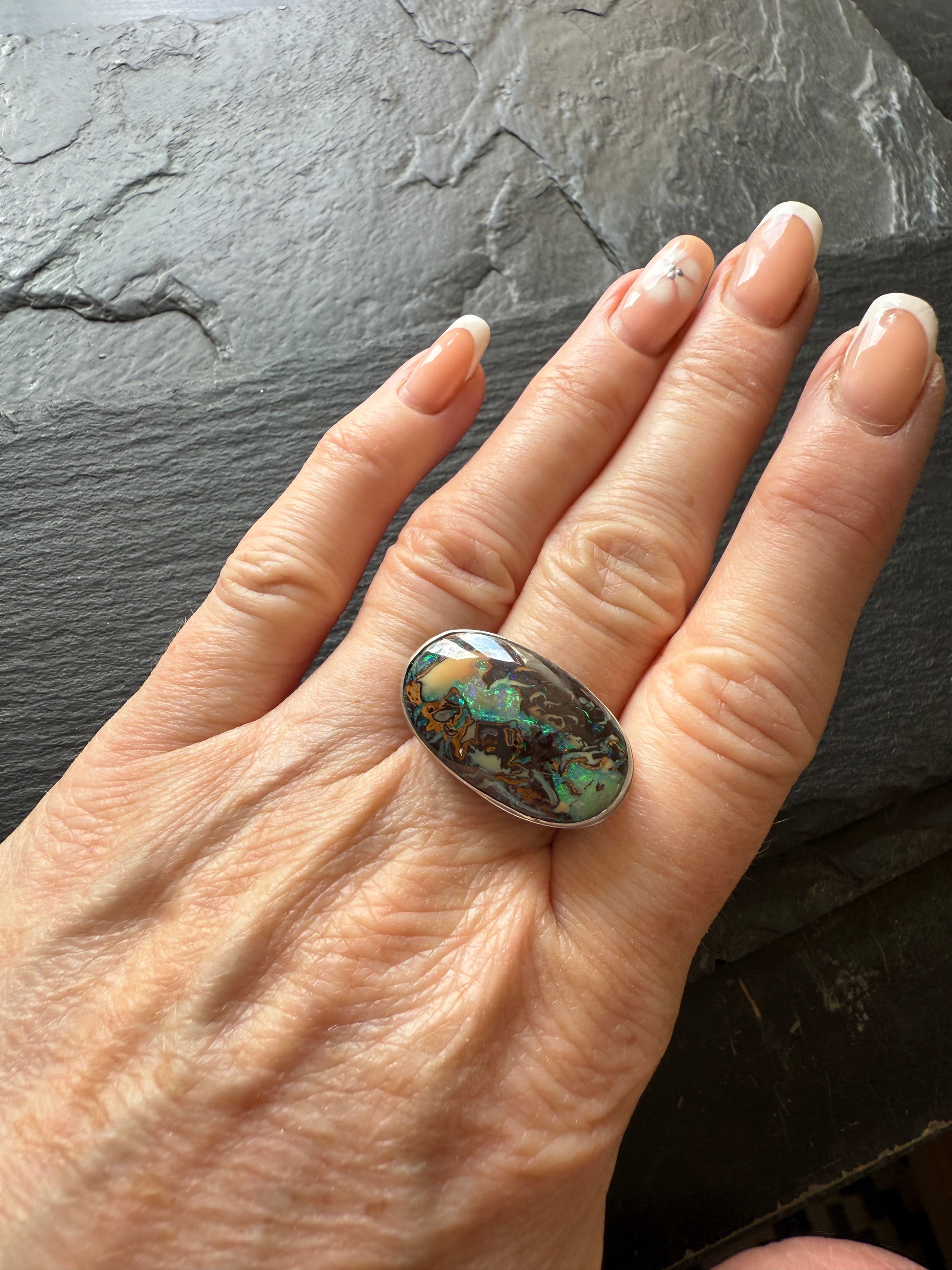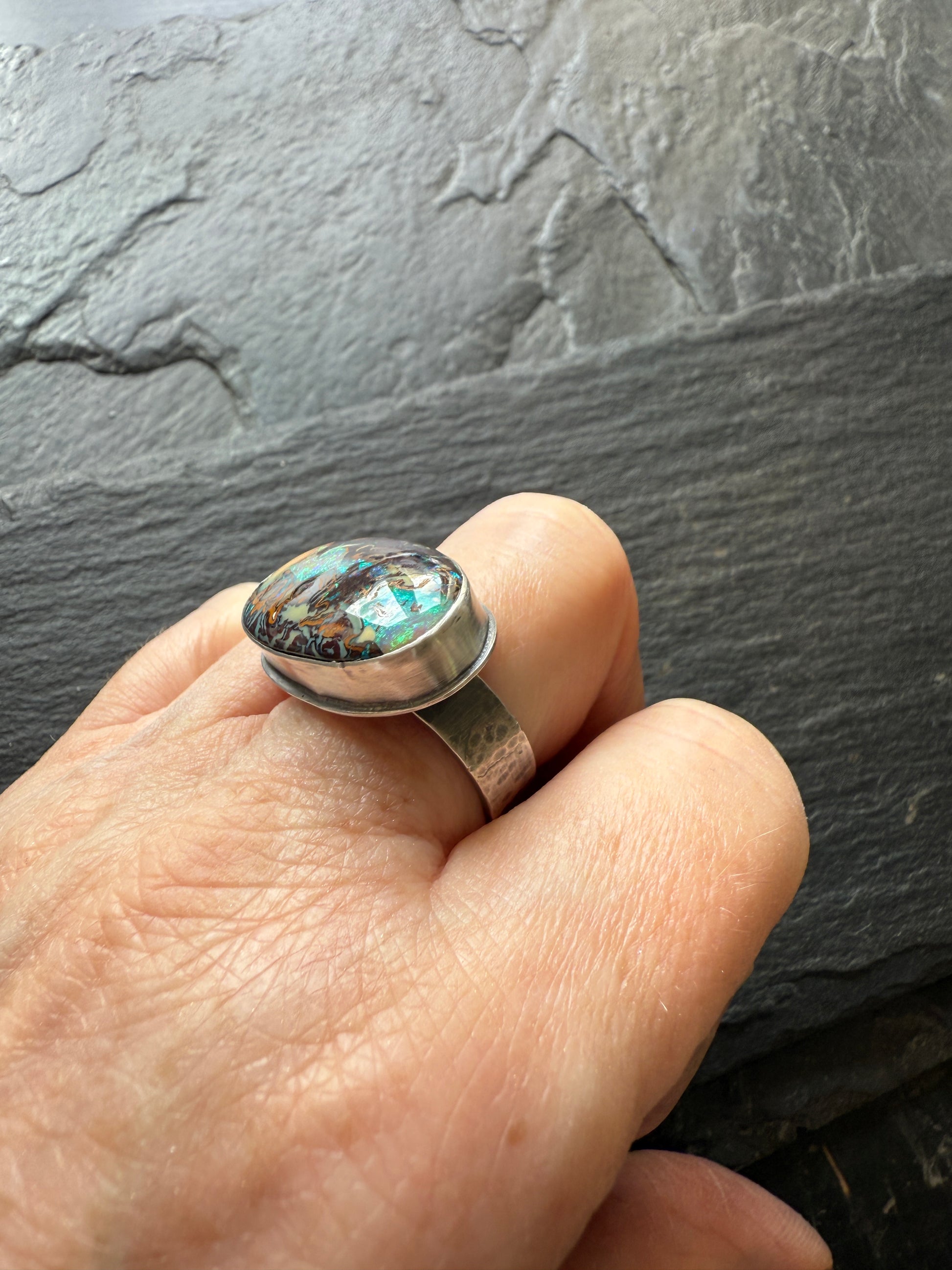 Large Boulder Opal Ring US 8